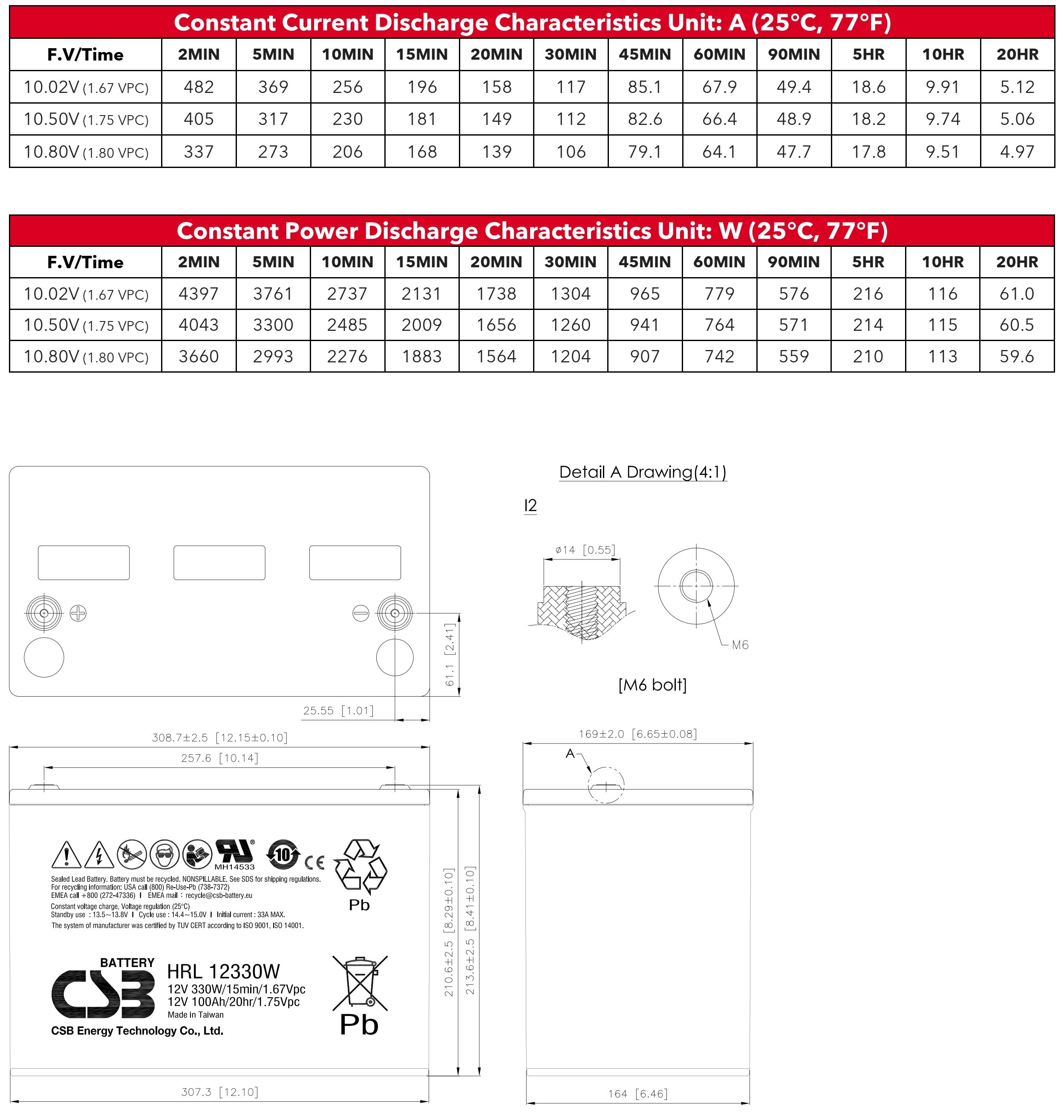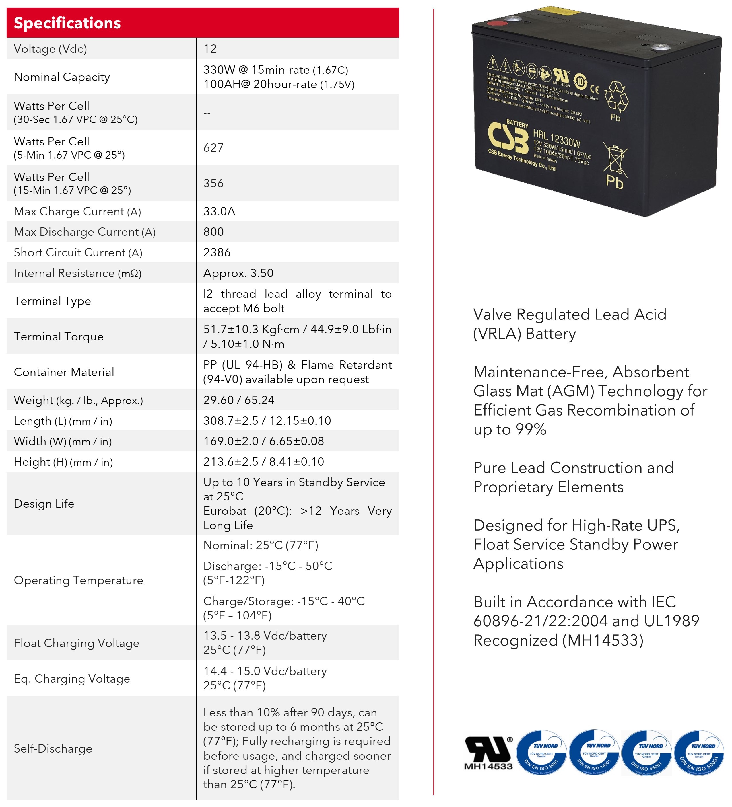 | Model Number | CSB HRL12330W | Battery | 12V 330W |